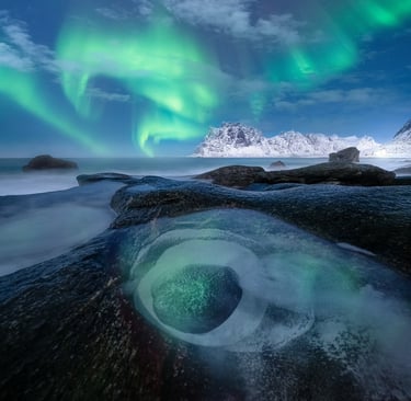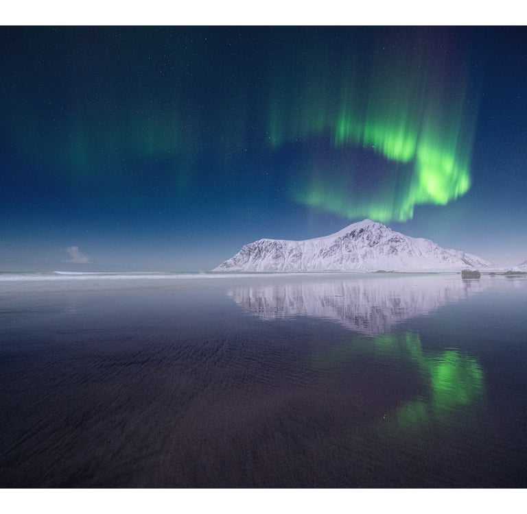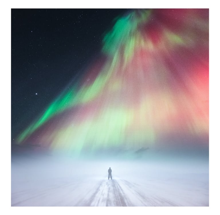 Budowanie Kompozycji przy fotografowaniu zorzy polarnej.