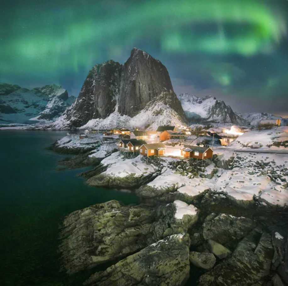 Lofoty to archipelag na Morzu Norweskim, leżący za kołem podbiegunowym, uznany przez National Geographic za trzeci najpiękniejszy archipelag świata. Zjawiskowe, strzeliste góry wyrastające prosto z lazurowego morza, białe, piaszczyste plaże, są najwspanialszym tłem dla zielonego światła północy. Średnie temperatury, które zimą nie spadają poniżej zera oraz długie, ciemne noce stwarzają doskonałe warunki do polowania na zorzę.