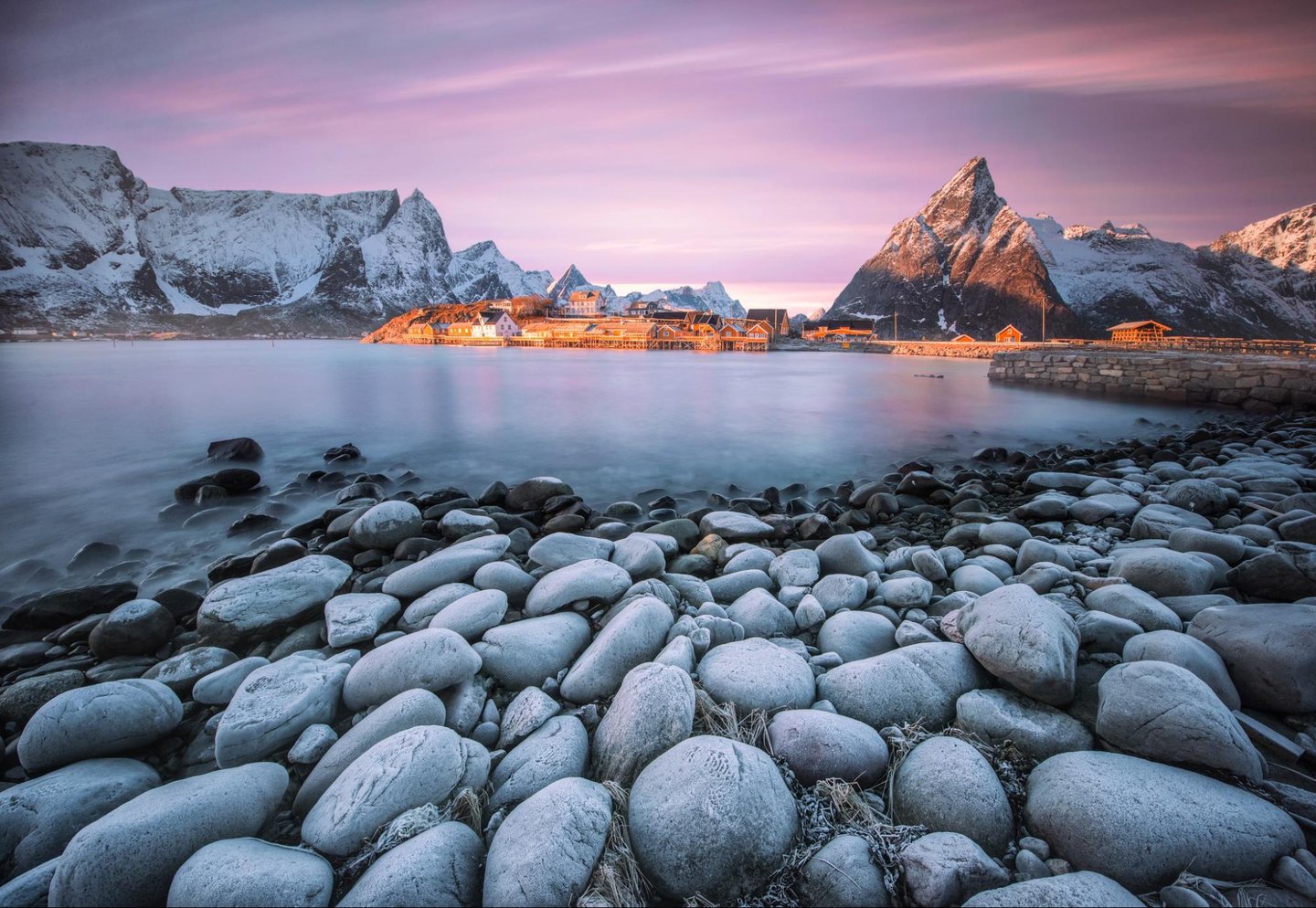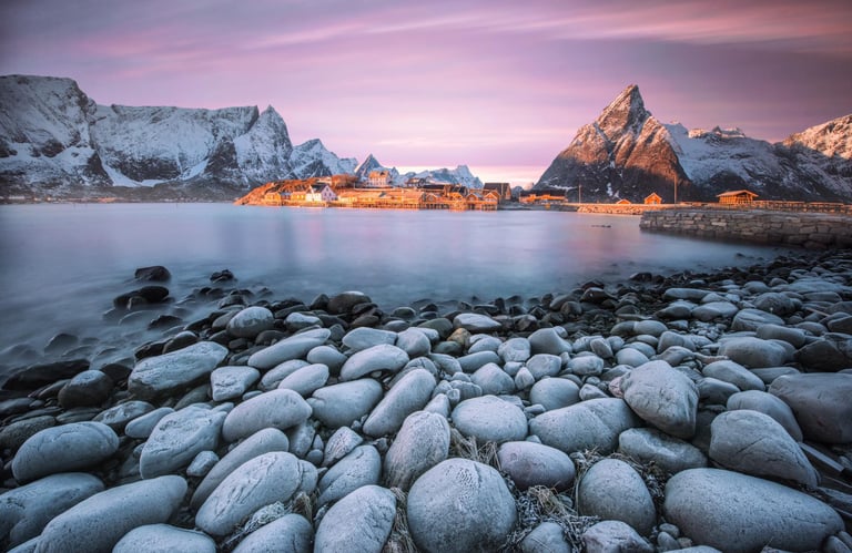 Reine to malownicza wioska na Lofotach, otoczona majestatycznymi górami i błękitnymi wodami fiordów. Uznawana za jedną z najpiękniejszych osad w Norwegii, oferuje spektakularne widoki, zwłaszcza przy zachodzie słońca.