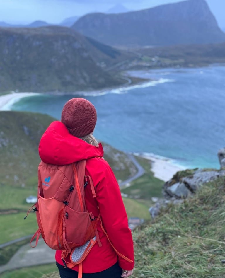 Plaża Vik na Lofotach to urokliwa, mała zatoczka otoczona stromymi górami, gdzie białe piaski kontrastują z krystalicznie czystą wodą. Idealne miejsce na spokojne spacery, często bez tłumów.