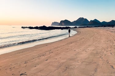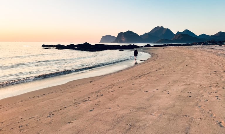 Ciekawostka: Plaża Kvalvika jest dostępna tylko pieszo i otoczona górami, co czyni ją jedną z najbardziej odizolowanych plaż na Lofotach.
