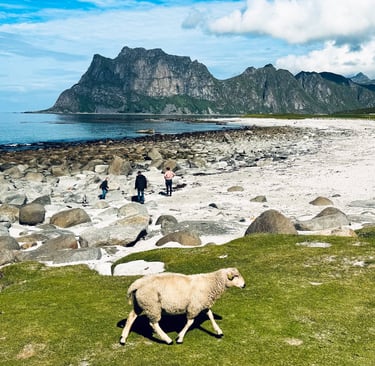 Cel podróży: Archipelag Lofoty – słynący z dramatycznych gór, białych plaż i malowniczych wiosek.