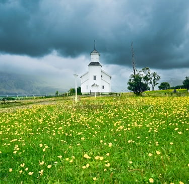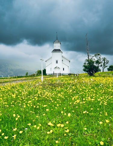 Ciekawostka: Jeden z najpiękniej położonych kościołów w Norwegii, idealne miejsce na zdjęcia.