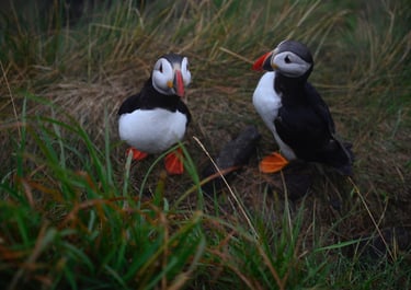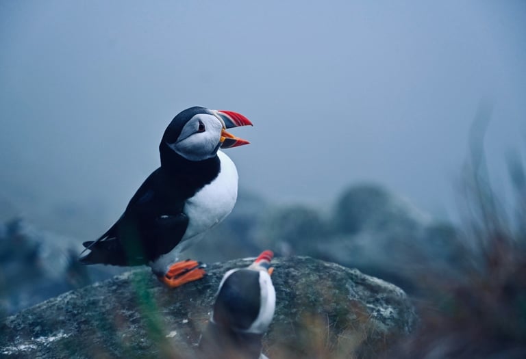 Dla mieszkańców wysp Røst i Værøy maskonur był nie tylko symbolem, ale także cennym źródłem pożywienia. Ludzie uzbrojeni w specjalne siatki, tradycyjni łowcy, wspinali się na strome klify, polując na te niezwykłe ptaki. Polowania były też pewnego rodzaju rytuałem, który wymagał odwagi i precyzji. Wystarczyło jedno potknięcie, by znaleźć się na dnie przepaści. Jedna z najbardziej tajemniczych technik łowieckich nosiła nazwę „taniec z wiatrem” – łowcy poruszali się w rytm falujących traw, starając się nie spłoszyć ptaków. Legenda głosi, że jeśli maskonur zauważył łowcę, ale nie wzleciał w powietrze, oznaczało to błogosławieństwo od duchów natury.