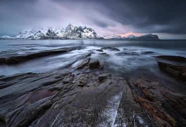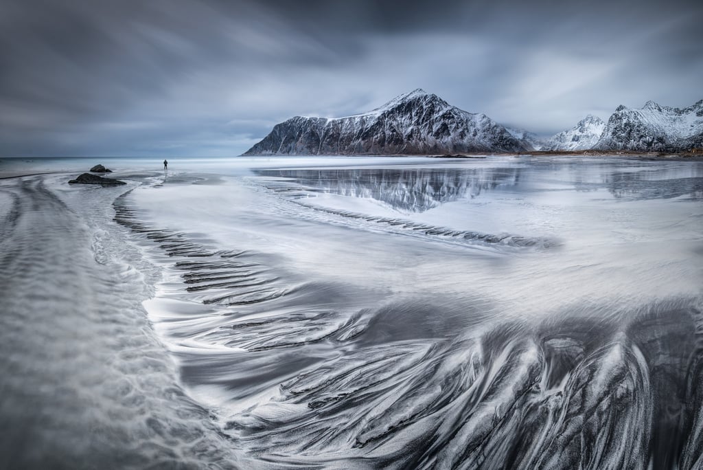Norwegia jest znana z dramatycznych zmian pogodowych, a szczególnie Lofoty, co może być zarówno wyzwaniem, jak i okazją dla fotografów. Pewnego dnia, podczas eksploracji jednego z bardziej znanych miejsc na archipelagu, natknąłem się na ciemne chmury, które przysłoniły słońce. Zamiast rezygnować, postanowiłem wykorzystać te warunki do stworzenia dramatycznych ujęć.